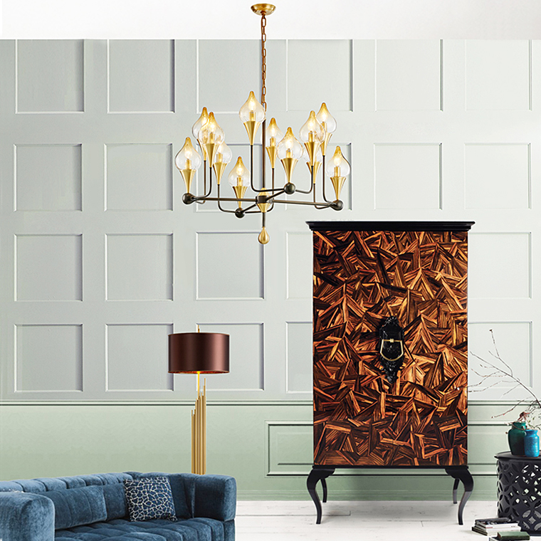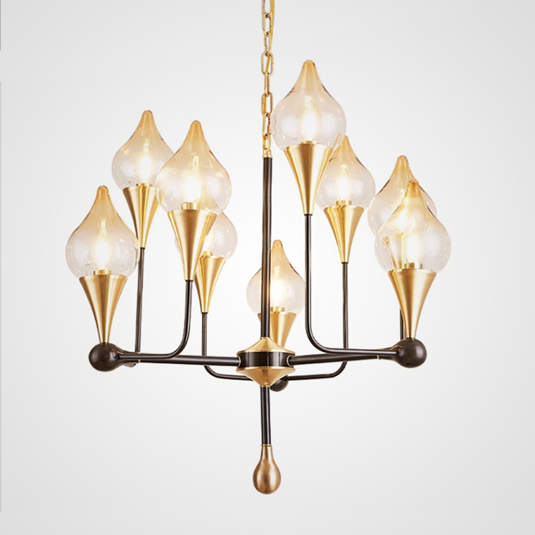 Люстра в стиле постмодерн с плафонами из стекла, имитирующими языки пламени. Для теплых интерьеров!