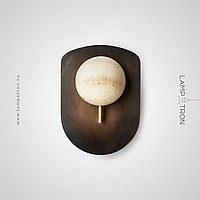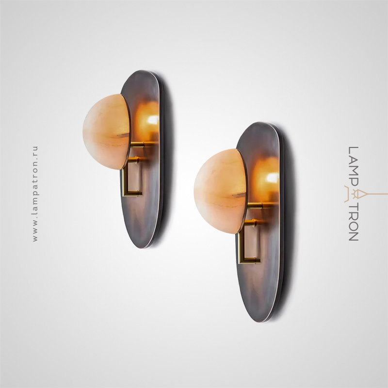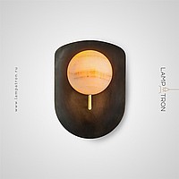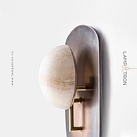 Настенный светильник с рассеивателем в форме полусферы из натурального мрамора на подковообразном металлическом основании