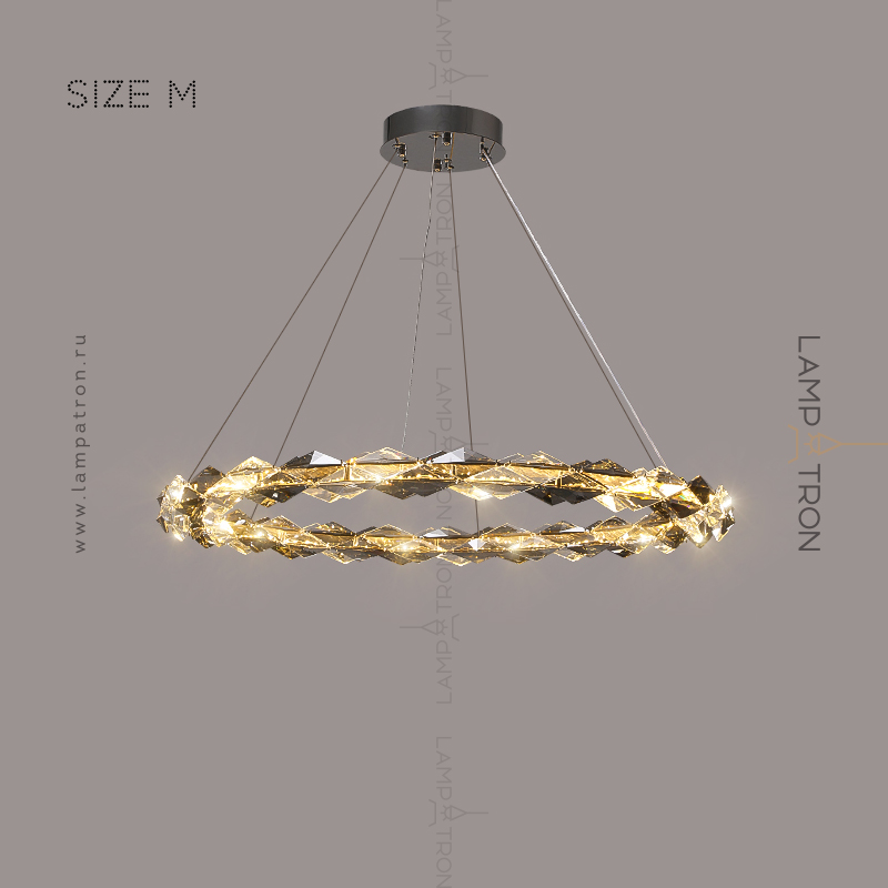 Серия кольцевых светодиодных люстр с хрустальными рассеивателями в виде накладных пластин ромбической формы