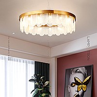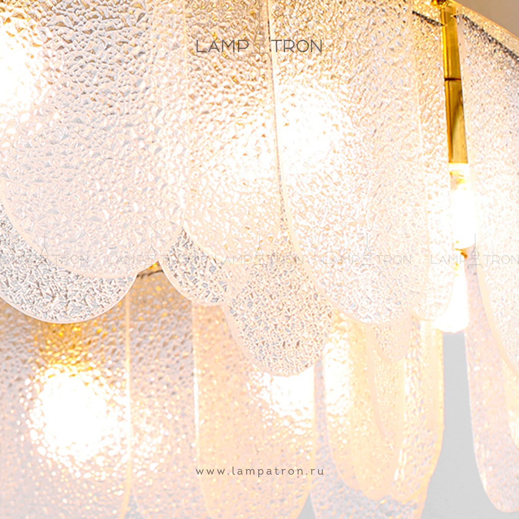 Круглый потолочный светильник с плафоном из рельефных подвесок округлой формы