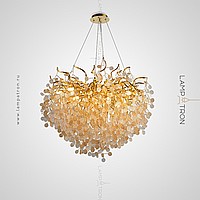 Серия подвесных люстр с наборными подвесками из стекла двух цветов на ветвистом каркасе