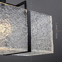 Светильник на 2 потолочных стойках с корпусом из рельефных пластин в виде объемного прямоугольника