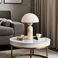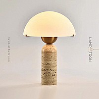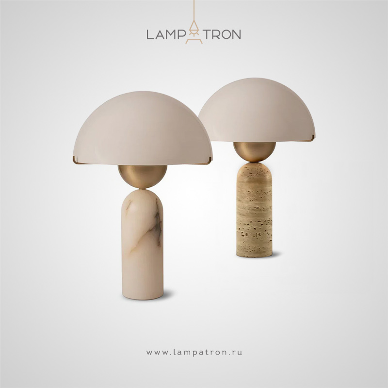 Серия настольных ламп с купольным плафоном на цилиндрическом основании из натурального камня