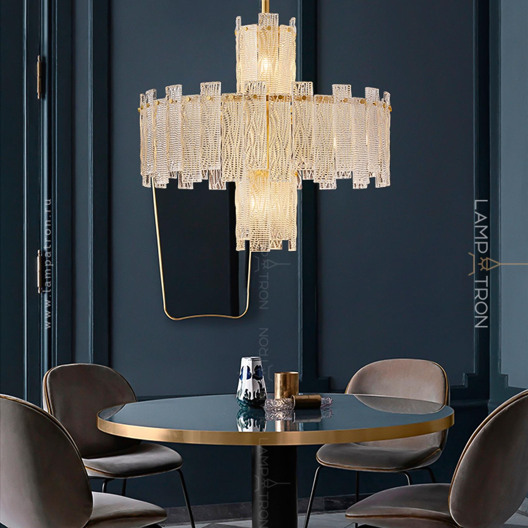 Люстра с составным плафоном цилиндрической и круглой формы из стеклянных пластин