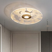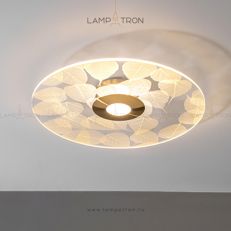 Потолочный светильник с дискообразным прозрачным рассеивателем с гравировкой в виде листьев и светодиодным источником света по центру