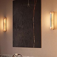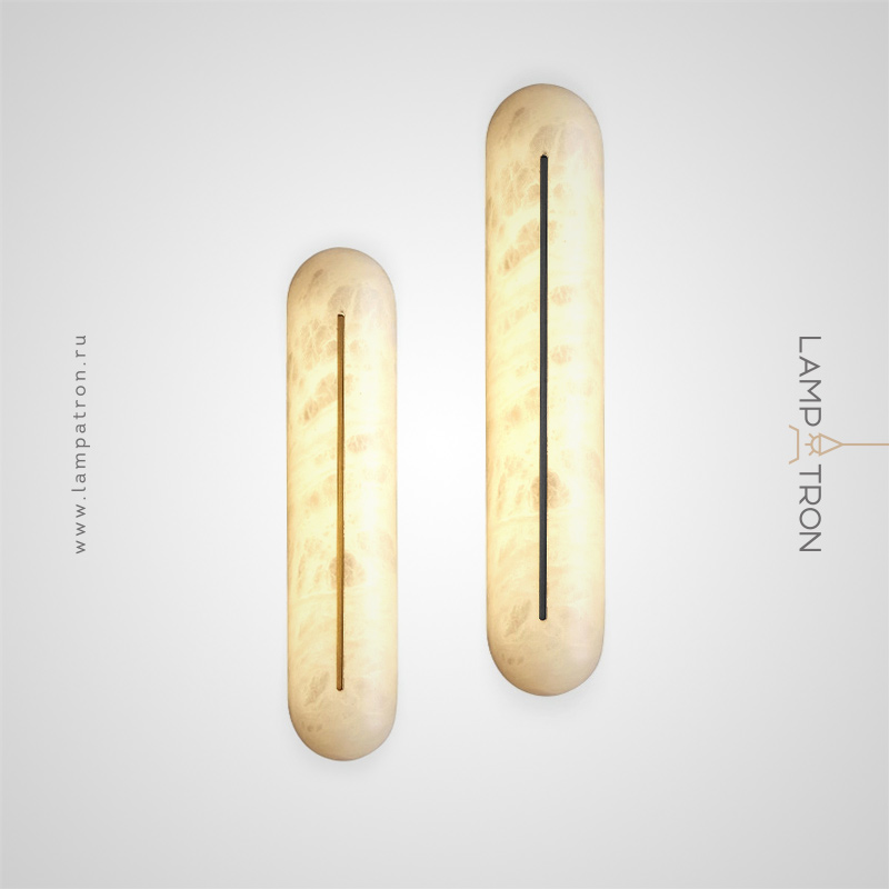 Серия настенных светильников с удлиненным рассеивателем из натурального испанского мрамора и центральным латунным клипом