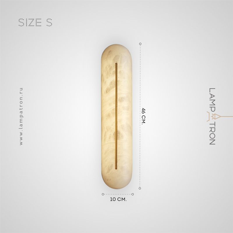 Серия настенных светильников с удлиненным рассеивателем из натурального испанского мрамора и центральным латунным клипом