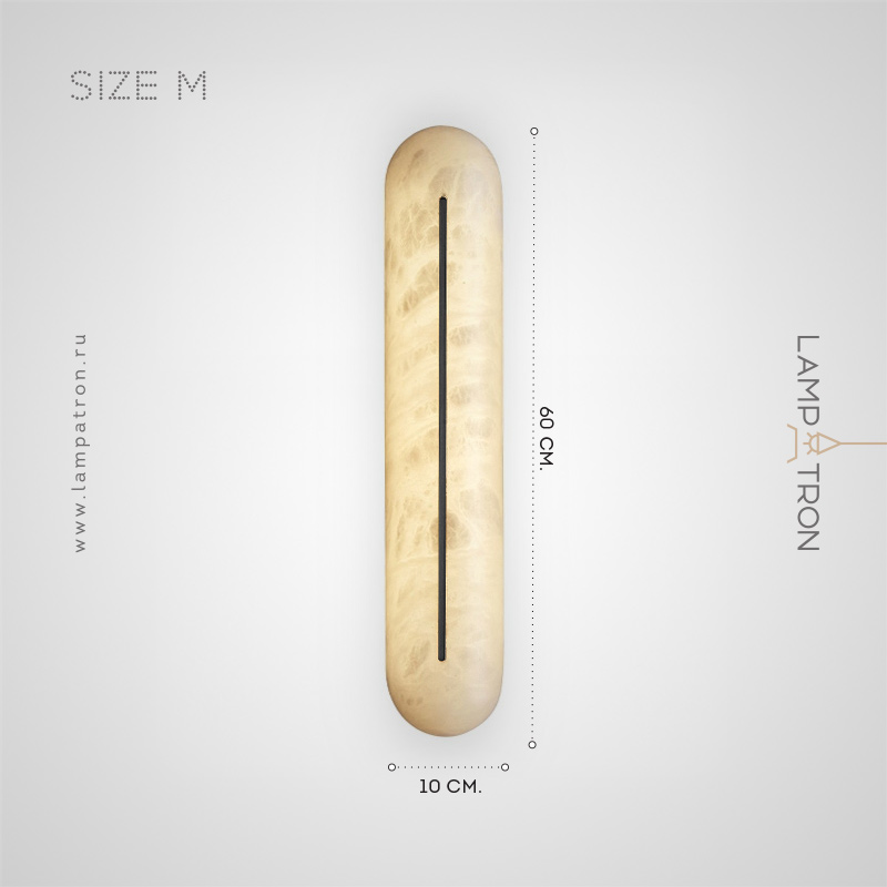 Серия настенных светильников с удлиненным рассеивателем из натурального испанского мрамора и центральным латунным клипом
