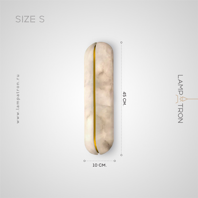 Серия настенных светильников с удлиненным рассеивателем из натурального испанского мрамора и центральным латунным клипом