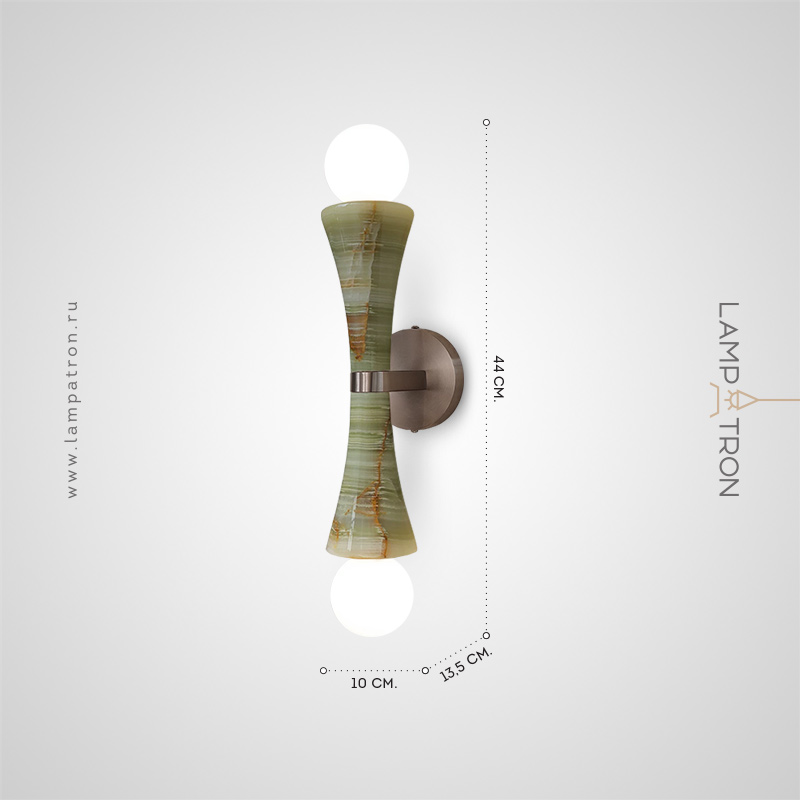 Серия настенных светильников с шарообразными плафонами на фигурном каркасе из натурального камня