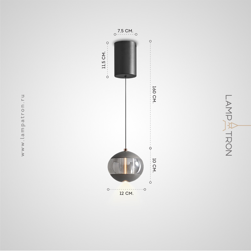 Серия подвесных светодиодных светильников в форме шара с оптической линзой в корпусе и регулировкой высоты подвеса