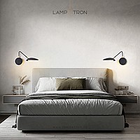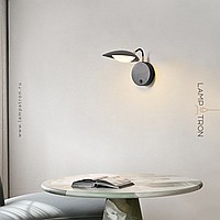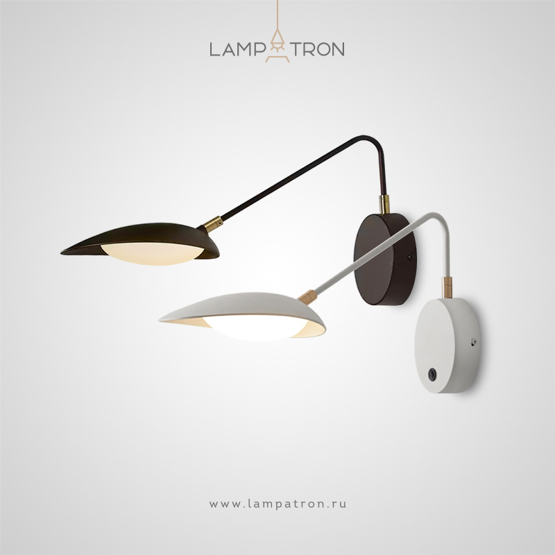 Серия настенных светильников с поворотным дисковидным плафоном на изогнутом кронштейне