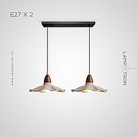 Готовая комбинация подвесных светильников с купольными абажурами из керамики и дерева с природными мотивами