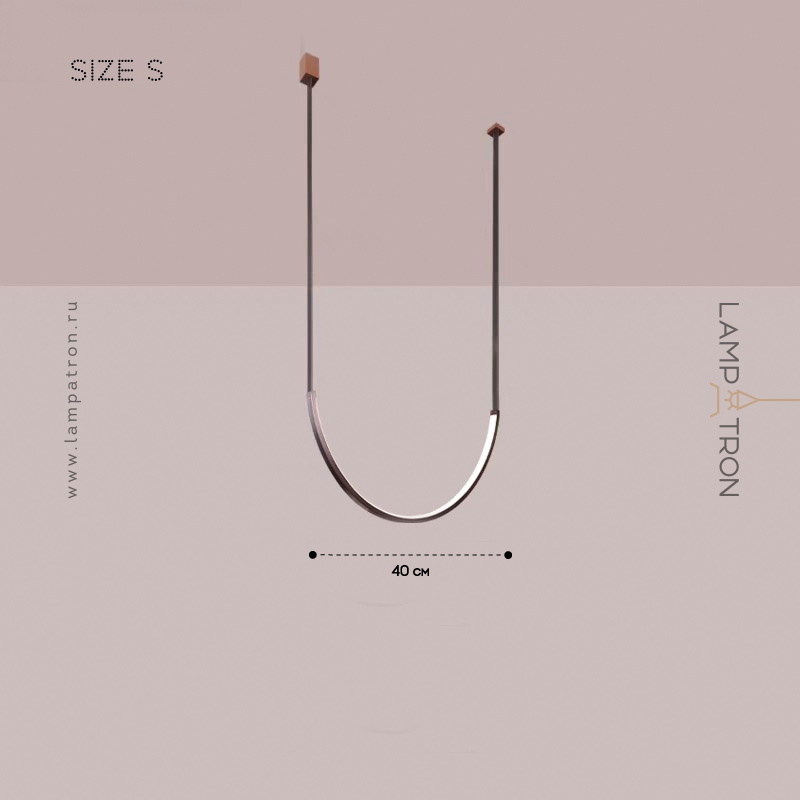 Серия светильников в виде дуг из металла с LED подсветкой на ременном подвесе