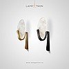 Настенные светильники ручной работы в виде двухстворчатых симметричных элементов из испанского алебастра и центром, декорированным простроченной кожей