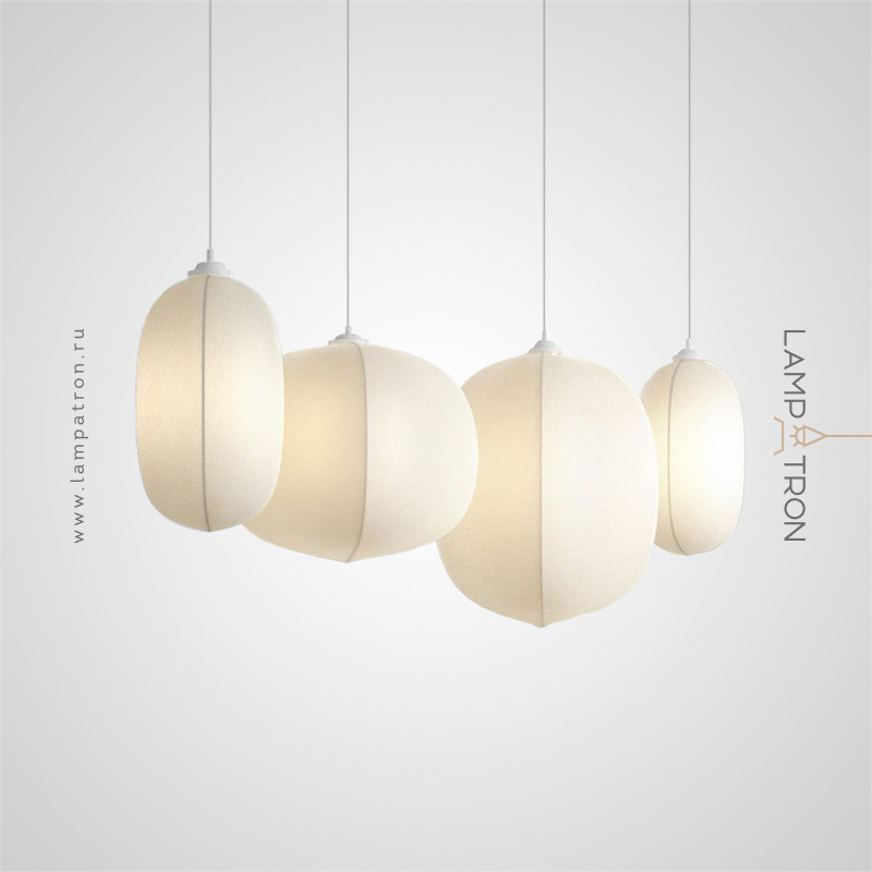 Серия подвесных светильников с объёмными белыми абажурами из шелка