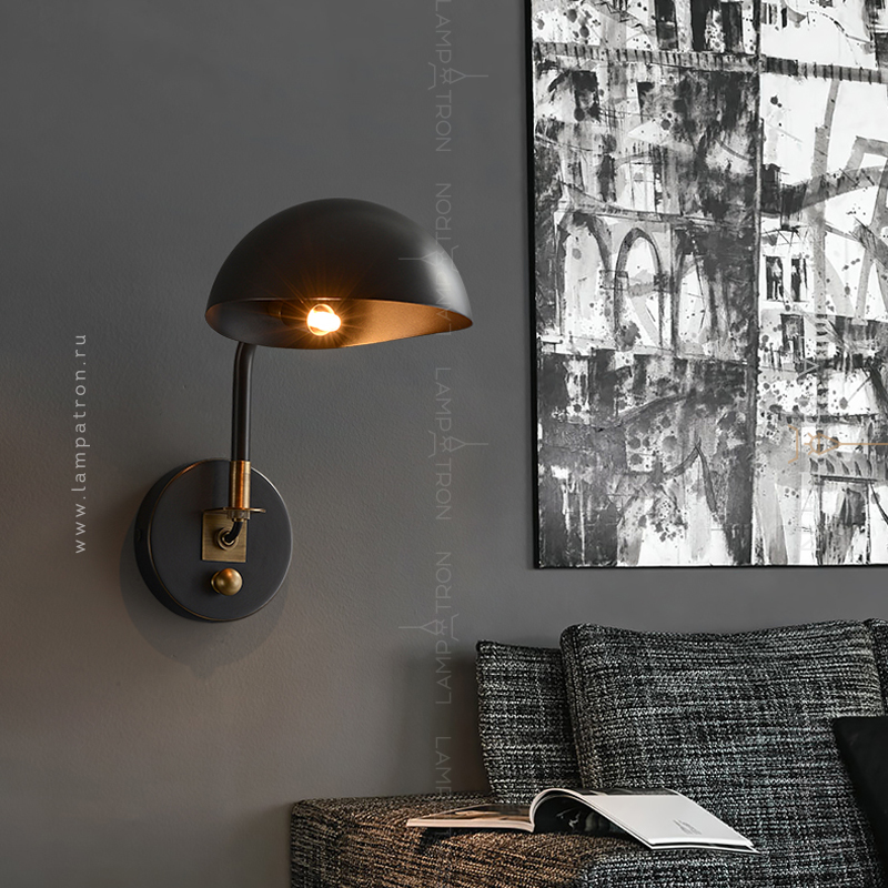 Настенный светильник с металлическим абажуром купольной формы на кронштейне с круглым креплением