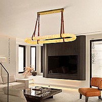 Светодиодная подвесная люстра с закольцованным корпусом из натурального испанского мрамора на кожаных ремешках