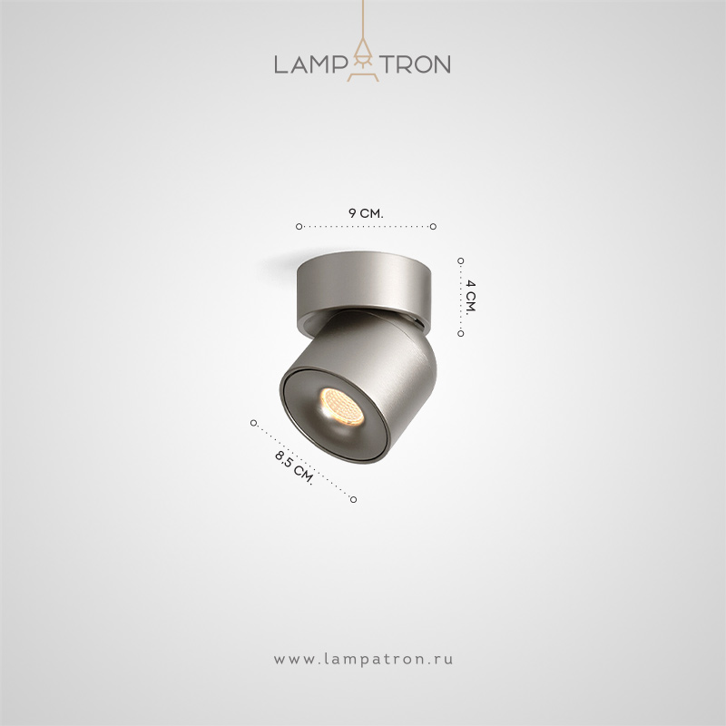 Накладной точечный светильник из никелированного металла с купольным спотом на цилиндрическом основании