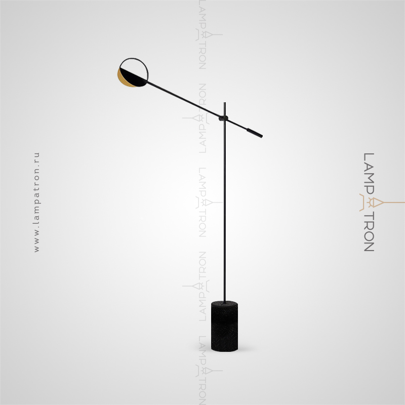 Светодиодный торшер с двуцветным листовидным рассеивателем и полукольцом на штативе с цилиндрическим основанием из камня