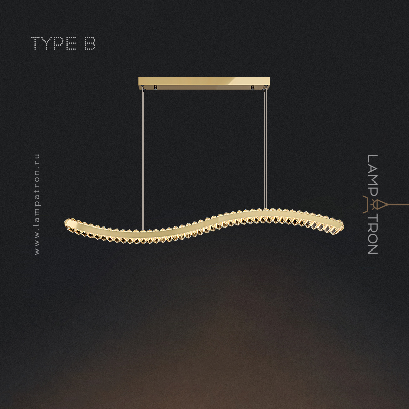 Серия реечных светодиодных светильников с прямоугольными хрустальными рассеивателями на волнообразном корпусе