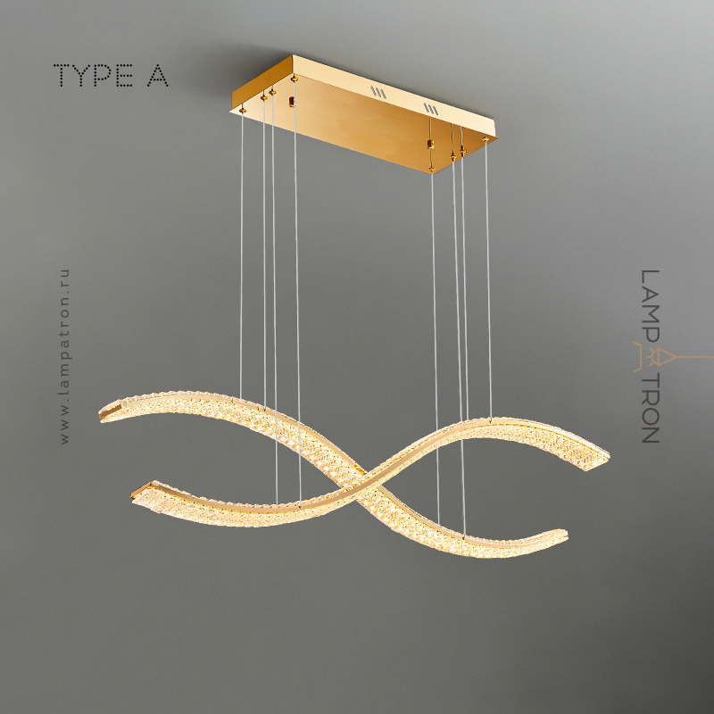 Серия светодиодных светильников в виде комбинации двух перекрещенных S-образных реек с хрустальными рассеивателями
