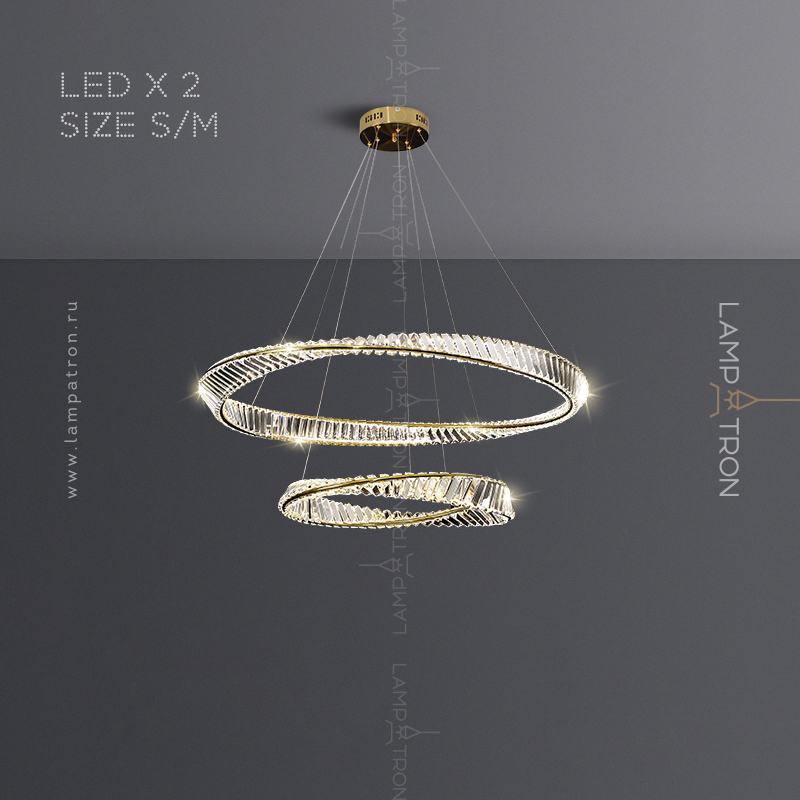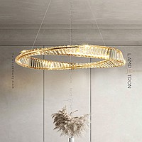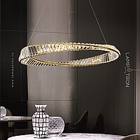 Серия кольцевых светодиодных люстр на струнном подвесе с прозрачными рассеивателями в виде прямоугольных хрустальных пластин