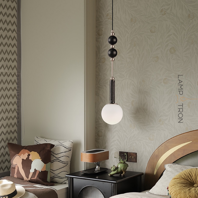 Серия подвесных светильников с шарообразным плафоном и декором из древесины