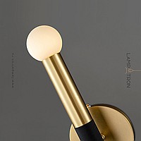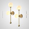 Серия настенных светильников с белыми шарообразными плафонами на цилиндрической стойке