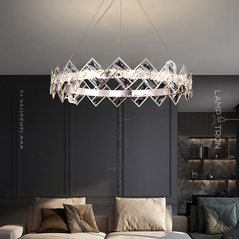 Серия кольцевых светодиодных люстр с прямоугольными рассеивателями из хрусталя на геометрическом каркасе