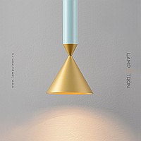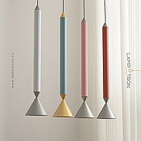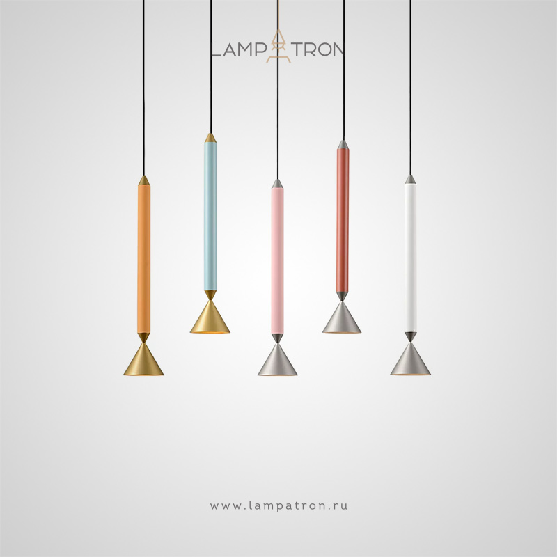Серия подвесных светодиодных светильников с конусовидным плафоном на цилиндрическом цветном корпусе