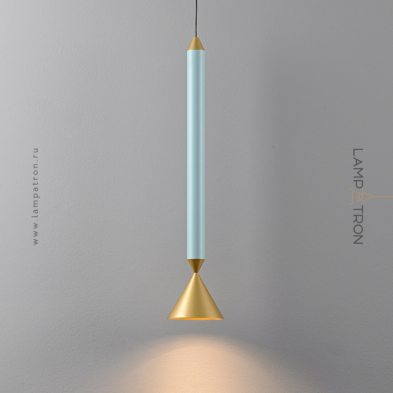 Серия подвесных светодиодных светильников с конусовидным плафоном на цилиндрическом цветном корпусе