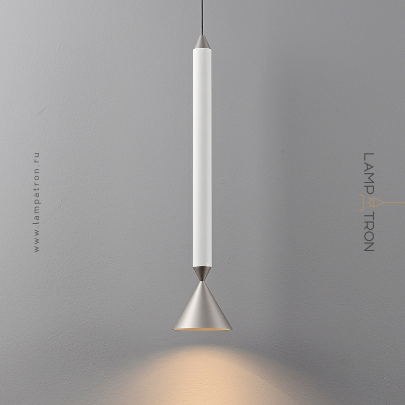 Серия подвесных светодиодных светильников с конусовидным плафоном на цилиндрическом цветном корпусе