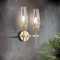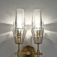 Статусный и строгий настенный светильник из латуни и толстостенного стеклянного плафона в стиле постмодерн.