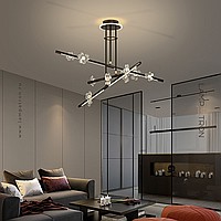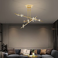 Серия светодиодных люстр с прозрачными рассеивателями в виде цветов на лучевом корпусе из латуни