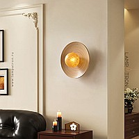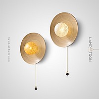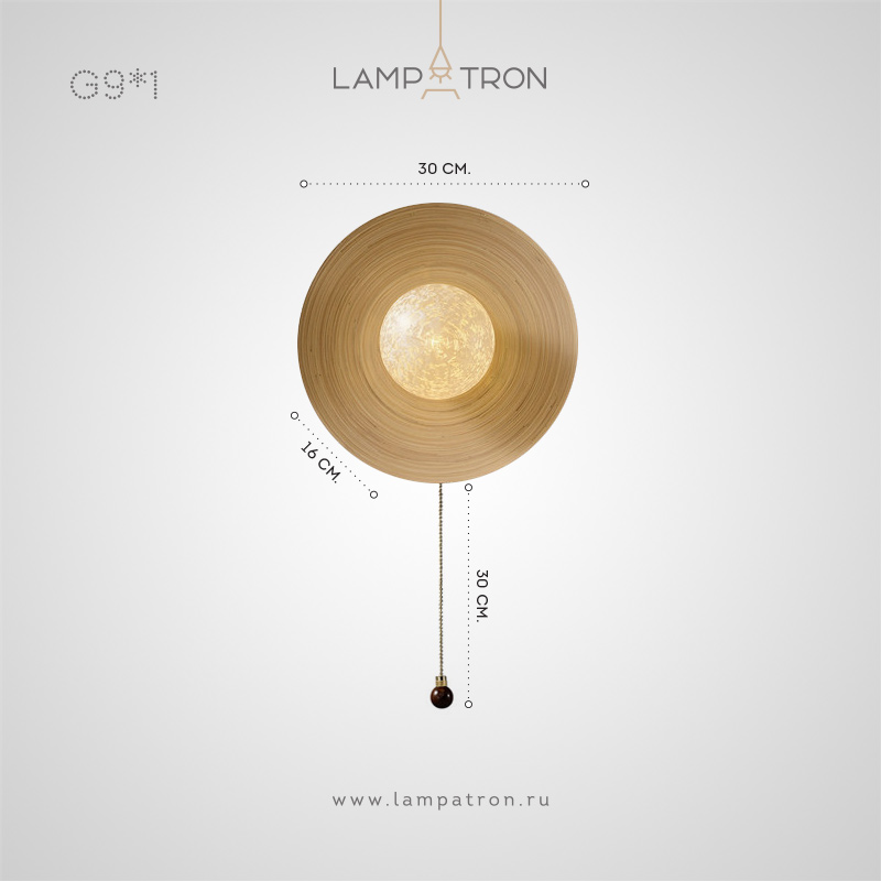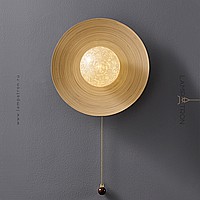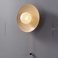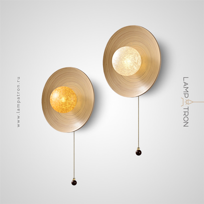 Серия настенных светильников с шарообразным стеклянным плафоном на дисковидной бамбуковой основе
