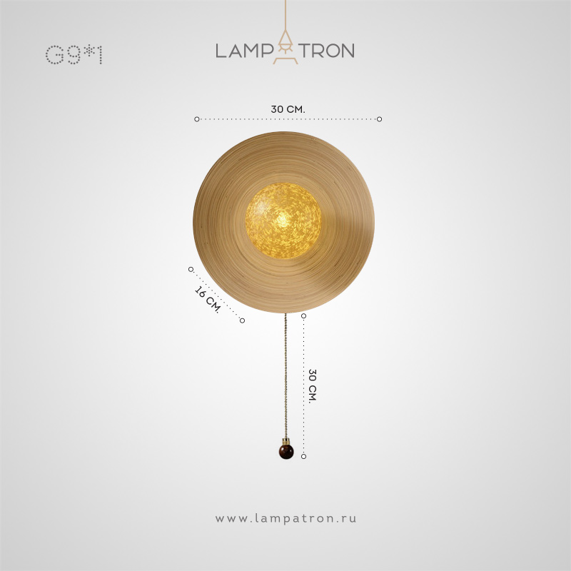 Серия настенных светильников с шарообразным стеклянным плафоном на дисковидной бамбуковой основе