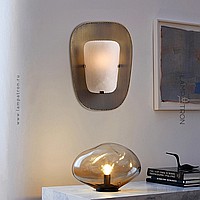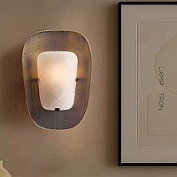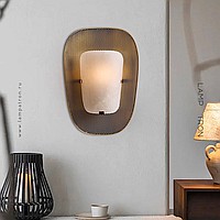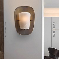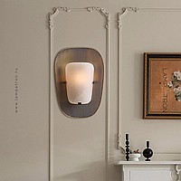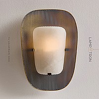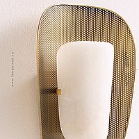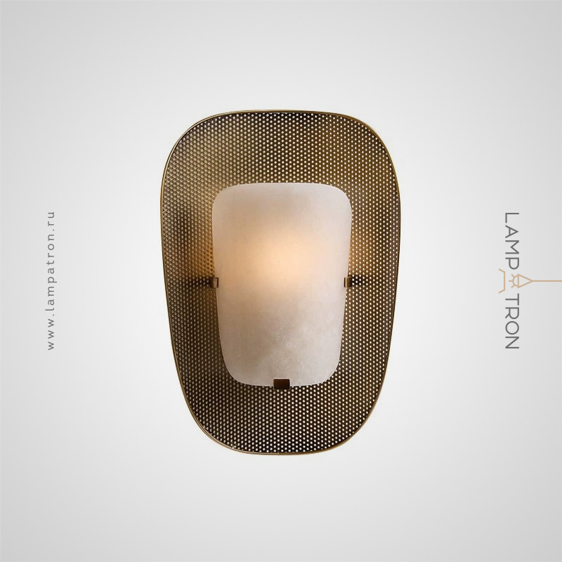 Настенные светильники с рассеивателем из испанского алебастра и щитовидным экраном с апертурной сеткой.