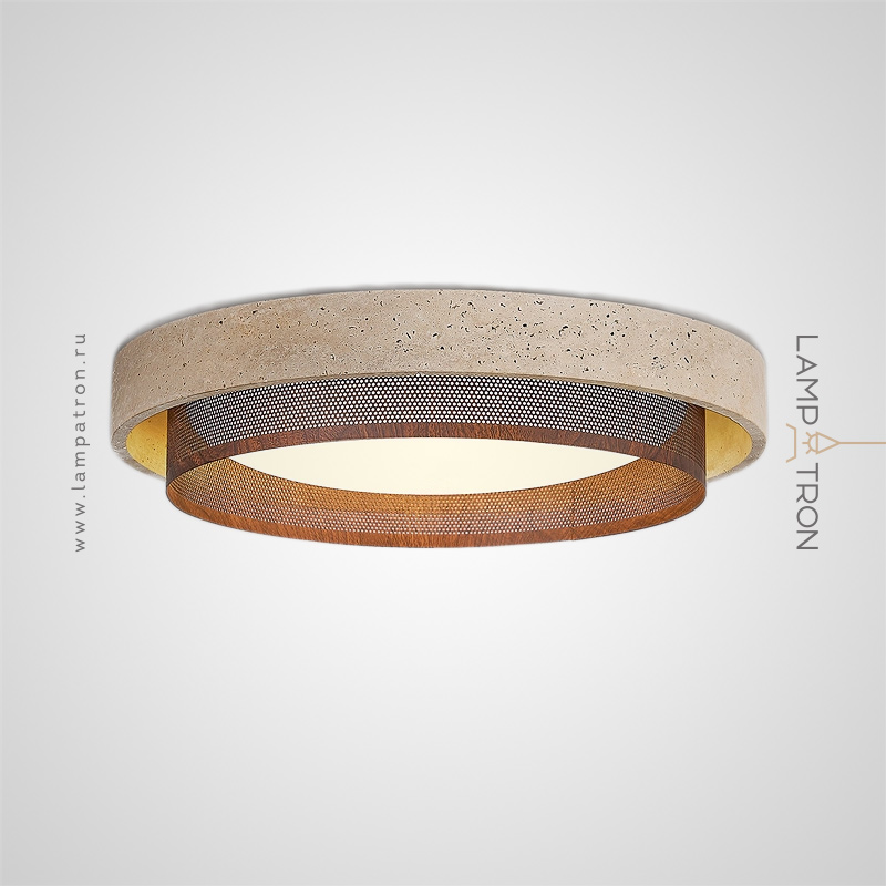 Потолочный светильник с корпусом из природного травертина и сетчатым рассеивателем