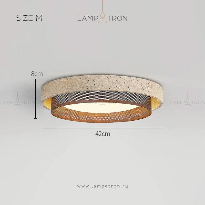 Потолочный светильник с корпусом из природного травертина и сетчатым рассеивателем