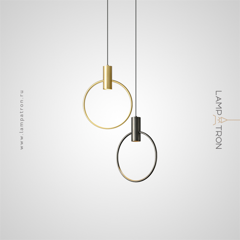 Серия подвесных светодиодных светильников с цилиндрическим спотом на кольцевом каркасе из настоящей латуни