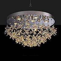 Серия инсталляций из подвесных хрустальных цветов на дисковом потолочном основании с точечными источниками света