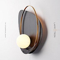 Настенный светильник каплевидной формы с шарообразный стеклянным плафоном внутри металлического эллипса