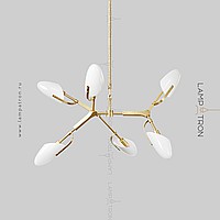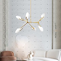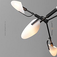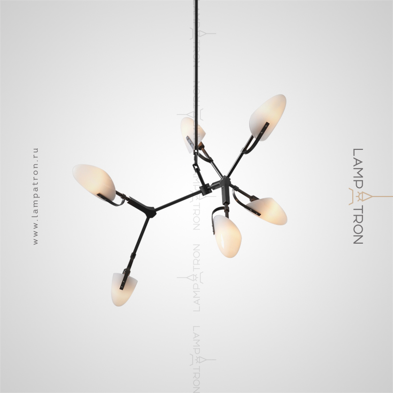Серия люстр с белыми стеклянными рассеивателями миндалевидной формы на разветвленном каркасе с поворотным механизмом