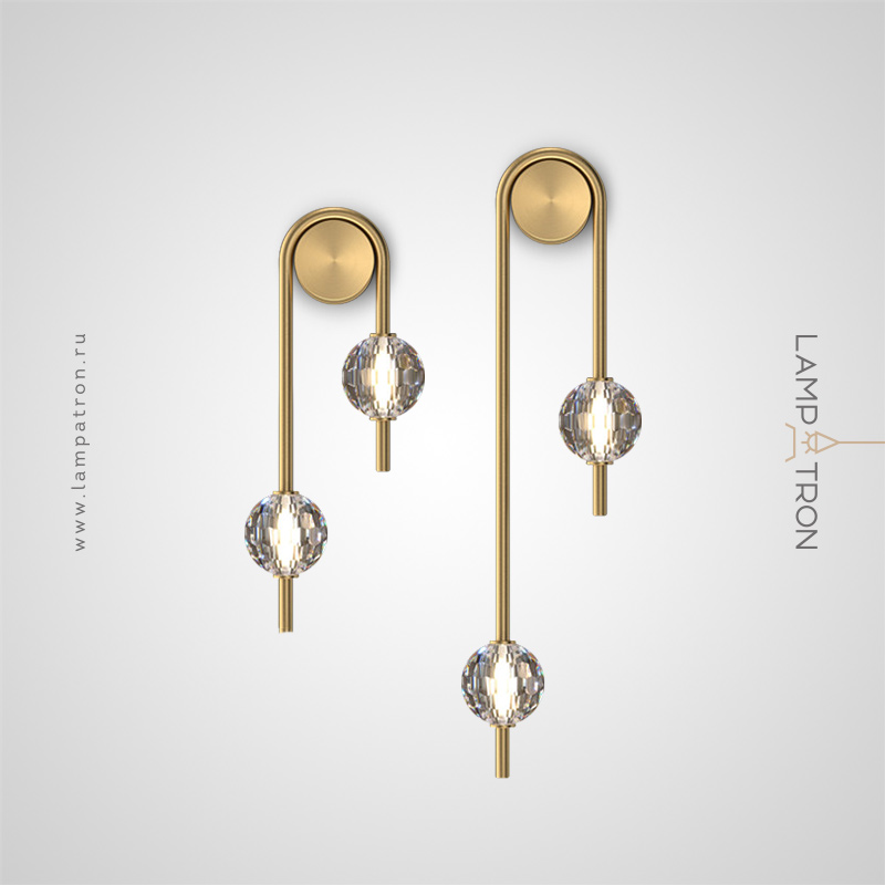 Серия настенных светодиодных светильников с дугообразным корпусом и хрустальными шарообразными рассеивателями