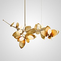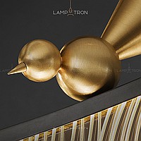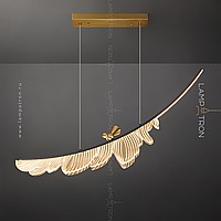 Дизайнерский подвесной светильник с листовидным плафоном на дугообразной рейке с LED-подсветкой и декоративной металлической птицей