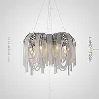 Серия кольцевых люстр на струнном подвесе с абажурами из хромированных цепочек