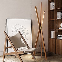 Серия напольных светильников в виде деревянной треноги с прямоугольными LED-панелями