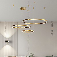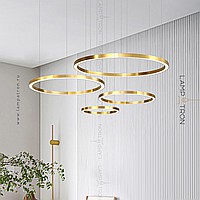 Серия светодиодных люстр в виде комбинации колец разного диаметра с LED-подсветкой по контуру корпуса в цвете латунь