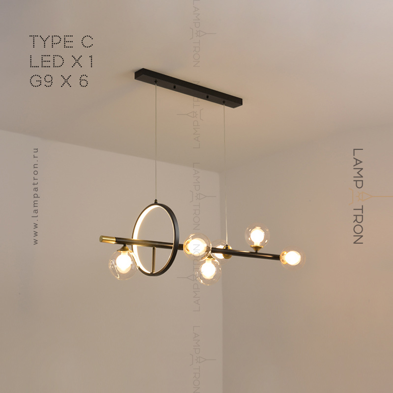 Серия реечных светильников в виде композиции из матовых шарообразных плафонов и колец с внутренним LED-свечением